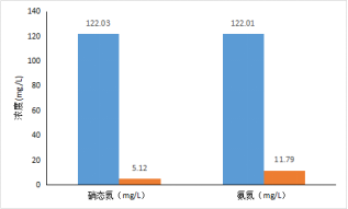 糧果廢水鹽度為2%,氨氮為122.01mg/L,硝態氮120mg/L左右,30℃下,生物處理后,硝態氮的去除率大于95%,氨氮的去除率為90%。